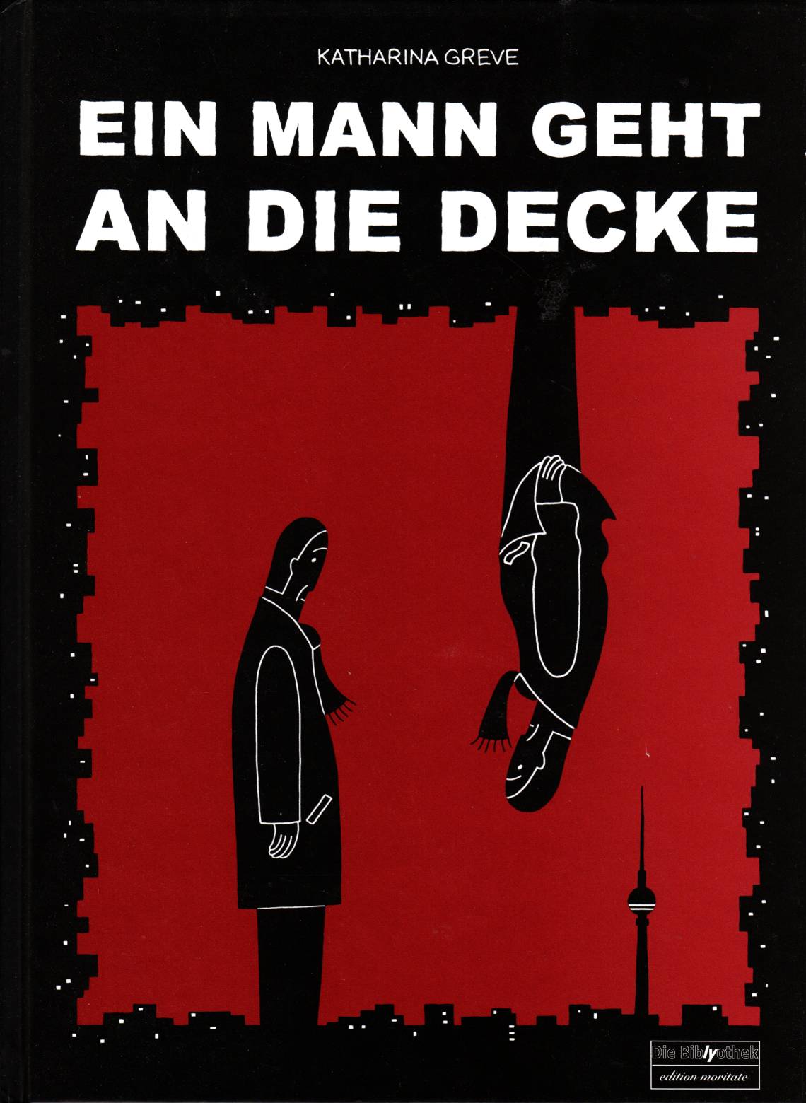 Bei dem Panel der Woche aus Katharina Greves Comic Ein Mann geht an die Decke (Die Biblyothek) sieht der Sachverhalt schon ein wenig anders aus. Das fünfte, hochkant ausgerichtete Panel auf Seite 28 stellt die Frage, ob oben wirklich oben ist.
